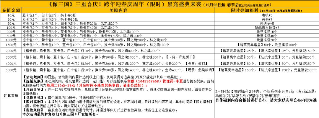 【三重喜庆!跨年迎春庆周年】“累充”豪礼尽入囊中|(快来get超大豪华阵容吧)