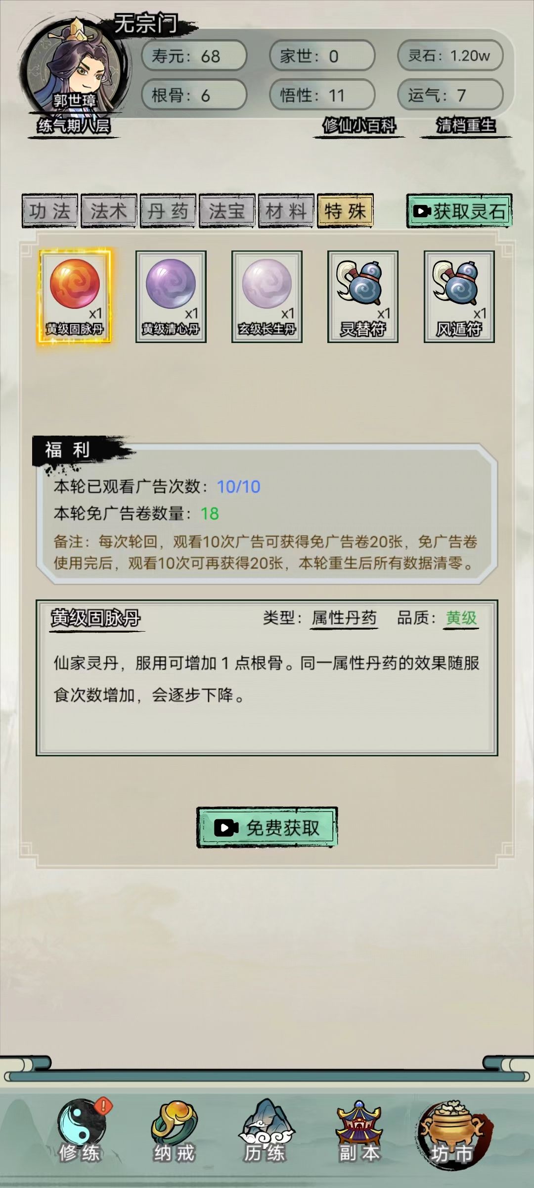 2、新增免广告券福利功能。大家看满10次广告之后,可以使用20次免费广告券。(轮回后次数清零)