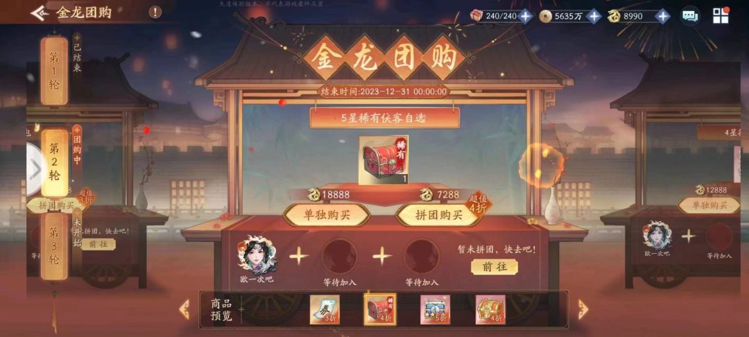 马上就到2024年了,值此辞旧迎新、全球欢庆的时刻,我们的挥剑问情也迎来了半周年之后又一个大的节日活动,不知道大家口袋里的钱包够鼓不够,小草和花叔要来薅大家的钱包喽。本期给大家带来的活动爆料是金龙团购,分为单独购买和拼团购买,就和大家理解的团购一样,买的人多,价格低。单独买贵,接下来给大家具体介绍团购: