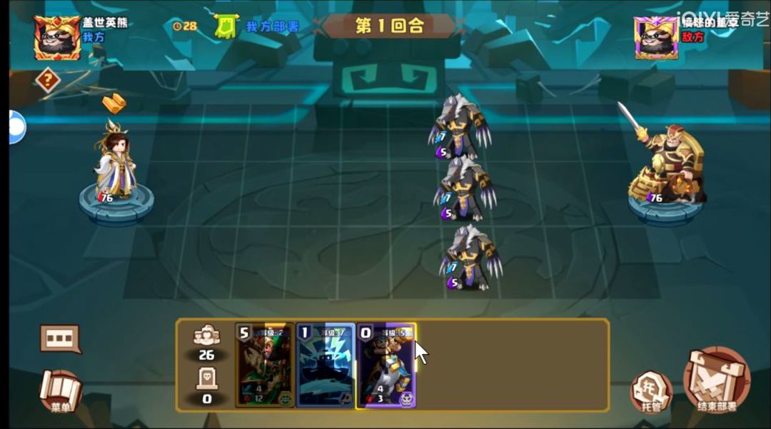 如果有3级霍骏,开局只要刷到手牌有霍骏,后面基本就能随便打了,因为对方的狸猫奈何不了你。以下开局处理是针对没有3级的霍骏的玩家讲解的。