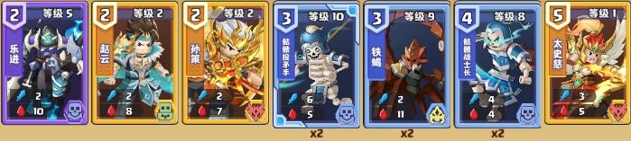 乐进:乐进这场战斗不是用来偷家,而是占场顶住一条路,只有2费的它比较容易上场。