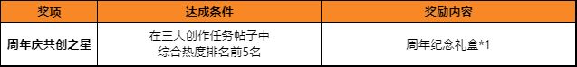 【特殊大奖说明】周年庆共创之星将于1月11日活动完整结束后进行评选,并于7个工作日内公布获奖名单,30个工作日内完成实物奖励发放。