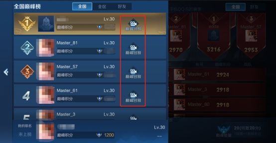 我们也在全国巅峰赛排行榜玩家右侧增加了【巅峰回放】按钮: