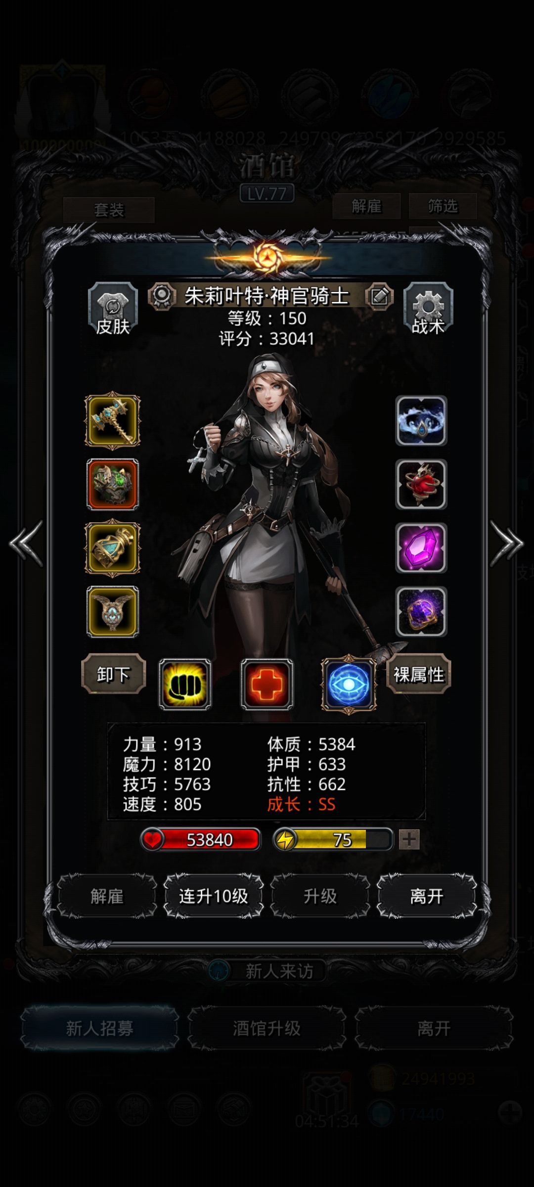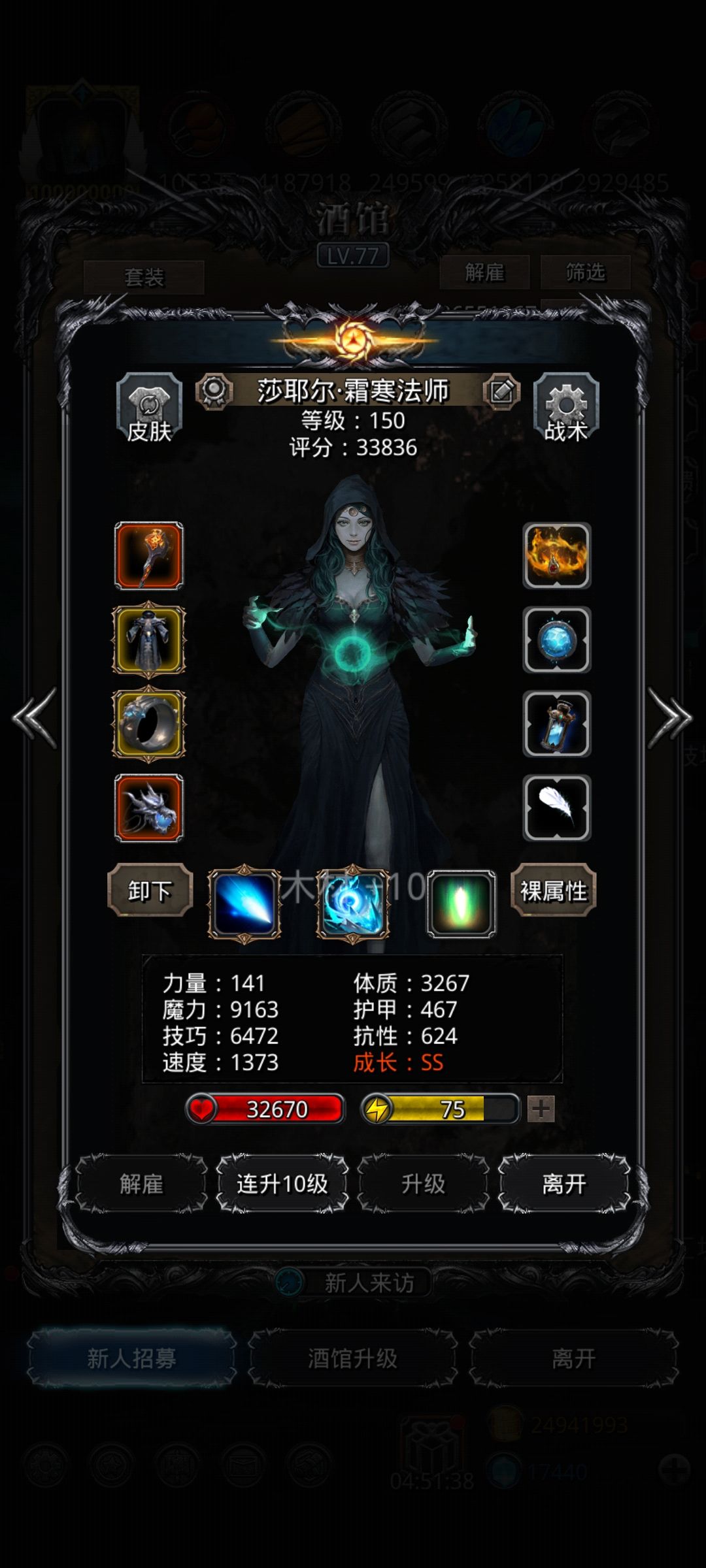 技能设置:神官嘲讽不断,血量保持健康,因为boss伤害是逐渐递增的所以奶线自己看情况,其他的2人群就完了(剑宗一直群)。小技巧:打BOSS时伤害不够可以等BOSS召唤小弟前将毁灭调为手动,召唤小弟后再自动,可以稳定出手三次,一般都没问题。神官参考奶线80自己50队友。冰法带群吸