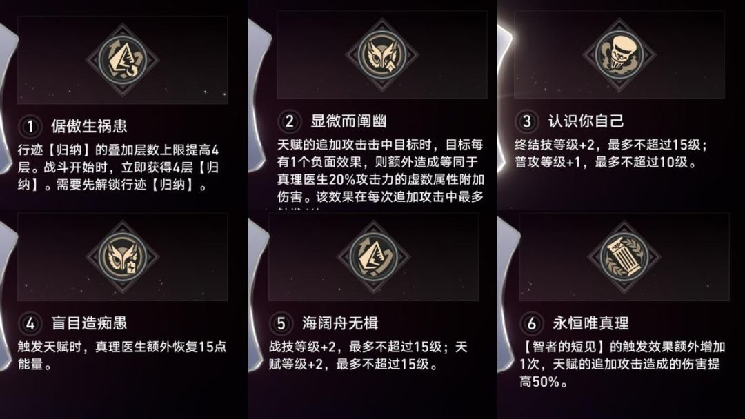 【星魂4】天赋追击额外回能15。此时真理医生可以轻松做到2动1大,优化了循环体验。