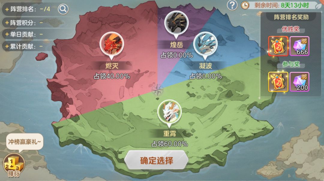 此外还会根据阵营内玩家贡献度排名,对排名靠前的玩家发放个人贡献度奖励;