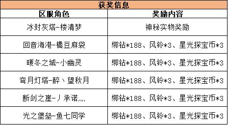 互动礼包内容:绑钻*188、风铃*3、星光探宝币*3