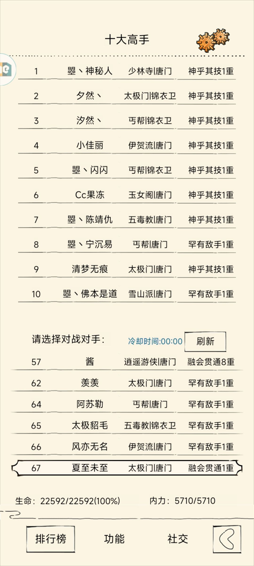 我上线查看后,我的排名掉到了江湖排名68,刚好处于太极七侠的最后一名,也就是太极门第11名。![[嗒啦啦2_赞]](https://img.tapimg.com/market/images/bd611bf2ef3ecdfe7b51a303fd7e5ad3.png)
