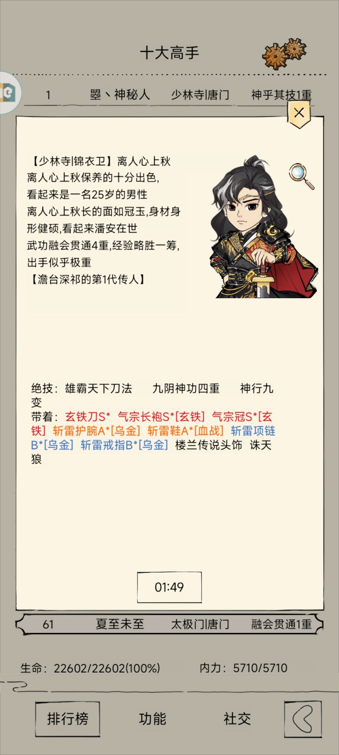 从江湖排名61开始,1次就打赢了江湖排名50多的综合融汇8全乌金套。