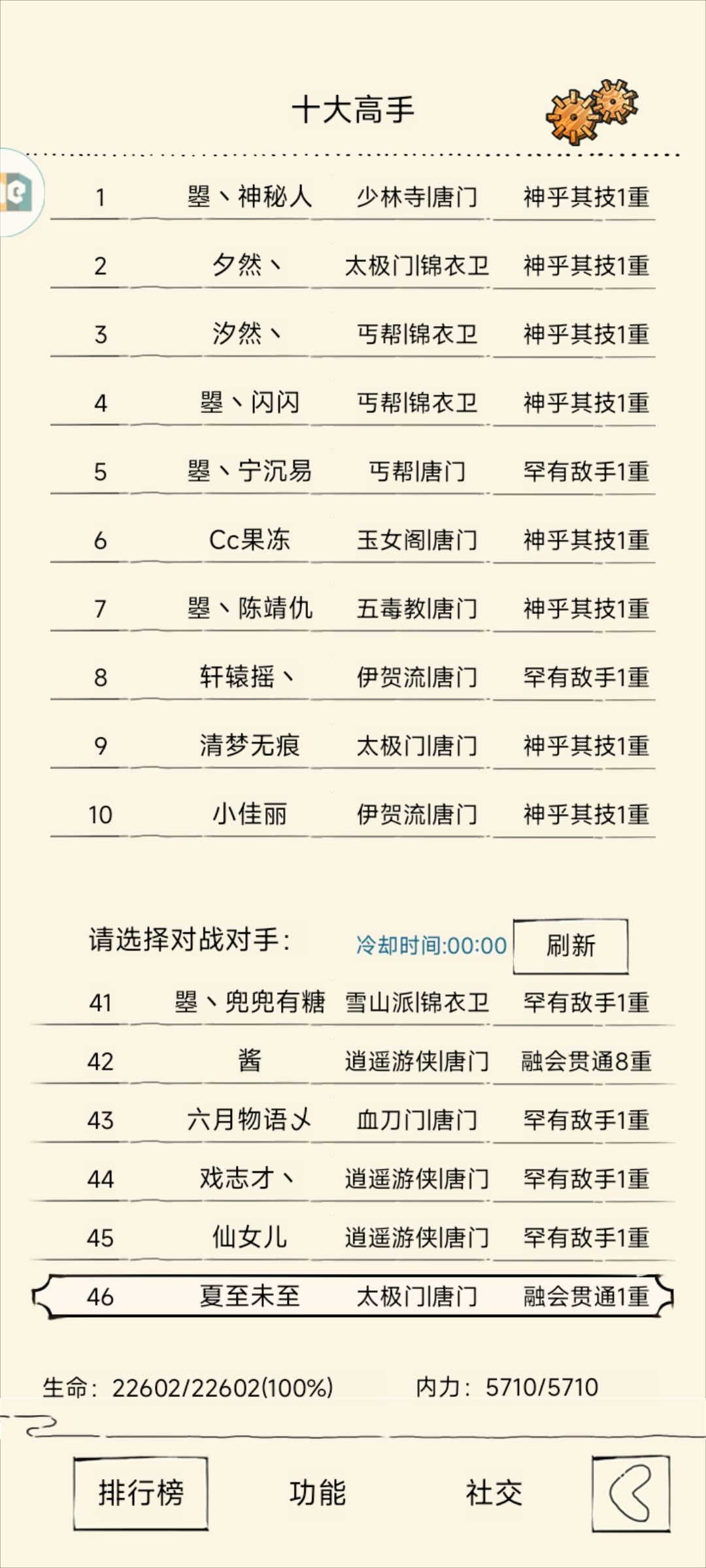 我比第10位太极七侠低了10名,第10位太极七侠也就是倒数第二位,他的江湖排名是47名。