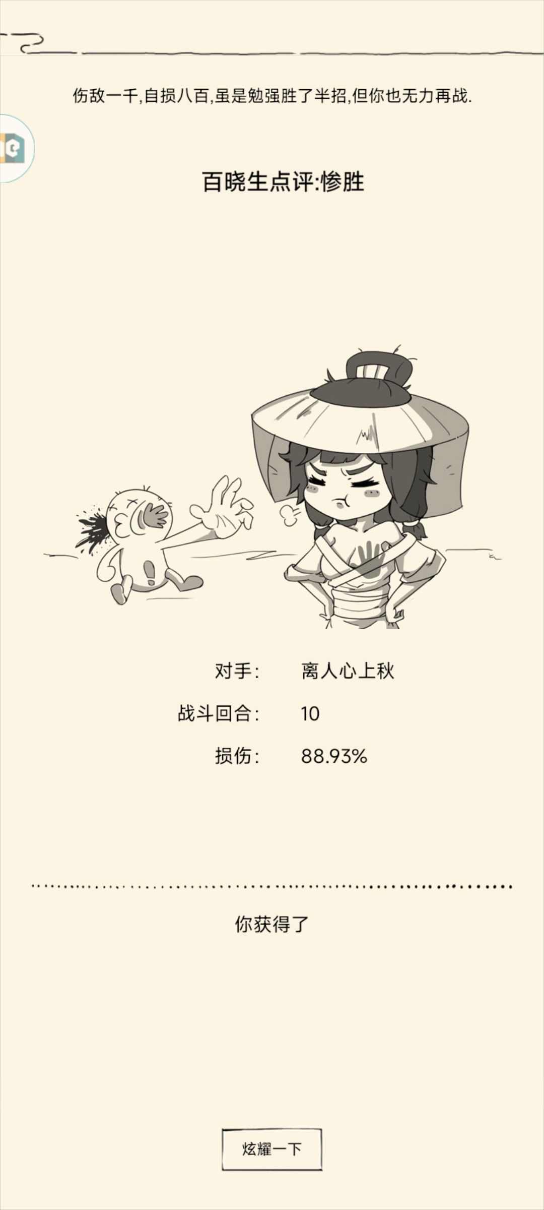 但是皇天不负有心人,在最后1次的太白经触发反击后,我终于侥幸打过他了!