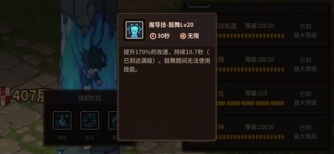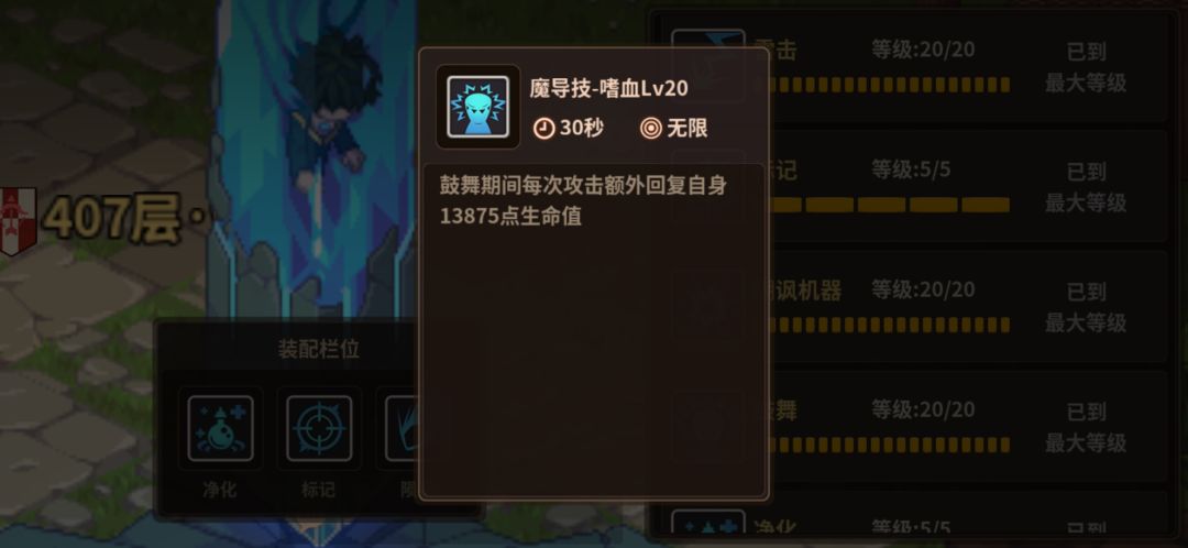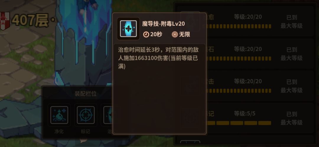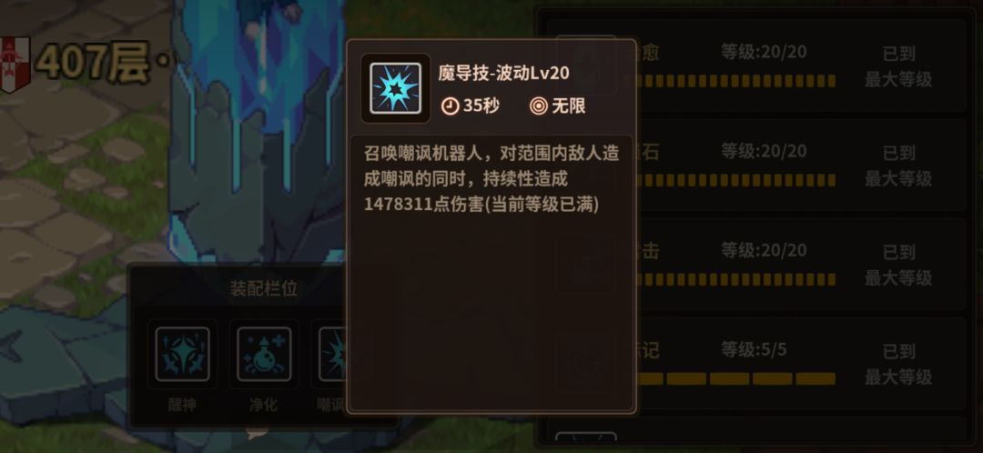 特点:8秒的回血和伤害,回血和伤害都挺高的,吃满相当于1千3百万左右的群体伤害,但是蓝耗实在太高是个扣分点,只建议打什么哈罗小魔怪冰娥这种阴间东西和召怪厉害的boss时候用。
