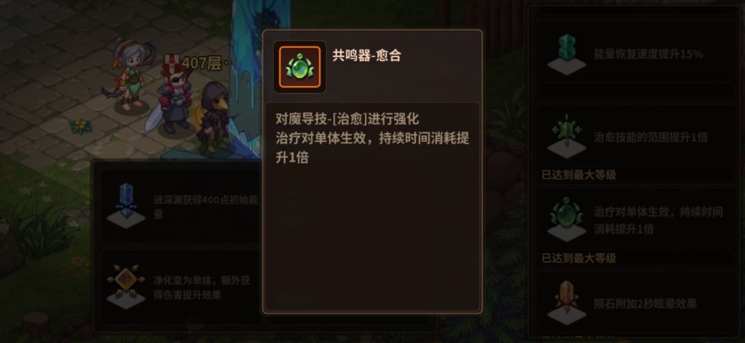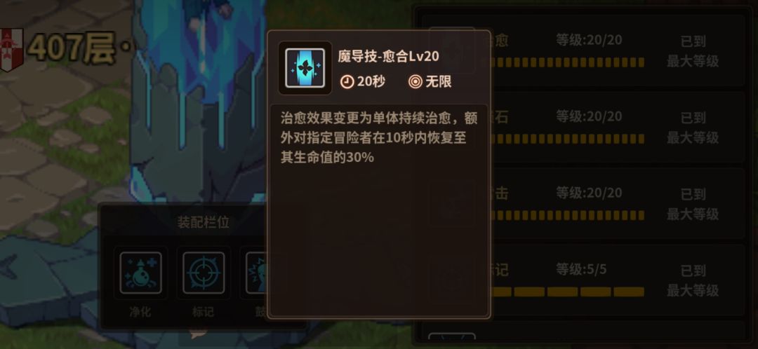 特点:10秒单体治愈时长(群体为5秒),根据魔导等级增加回血量,附下图对比。