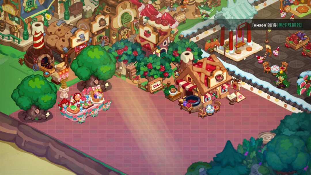 中心区域是餐厅给光顾的饼干们准备的表演,准备了蛋糕还有户外餐桌可以边吃边看,旁边还有个粉色小邮箱,不满意的地方饼干们可以写信告诉餐厅服务人员,最后还有一个卖纪念品的小推车。