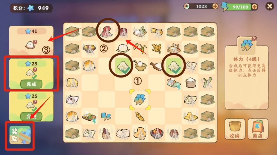 (1)前期请疯狂点击磨坊,合成小麦制品,完成左侧订单,等到积分够1300时就会有『道具箱』不要执迷于解锁棋盘上格子(实际也得等星级够才能解锁)
