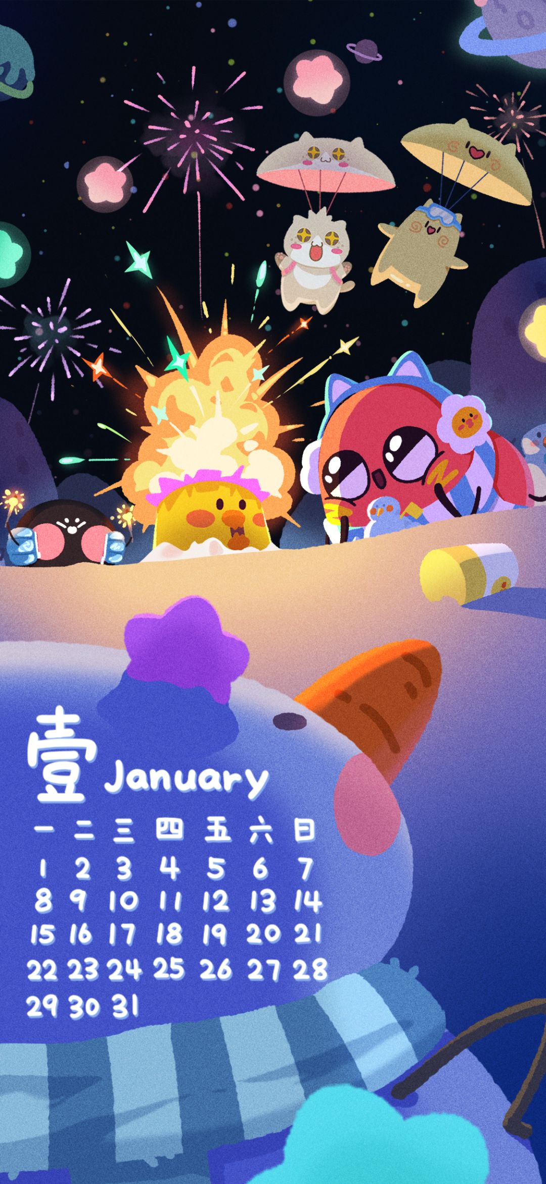 猫猫们和挚友红小豆一起画了1月日历送给你喵~