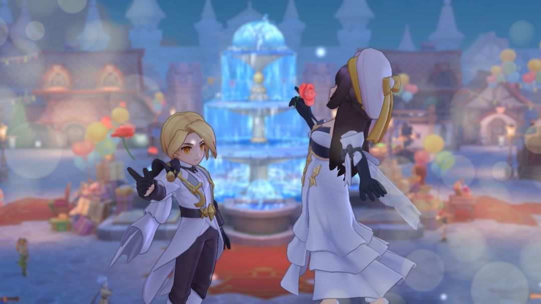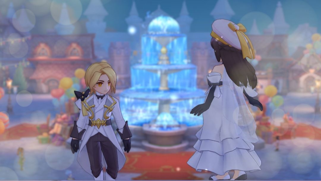 喷水池前的约会是一个经典而浪漫的开始,水流和灯光让背景更加唯美;