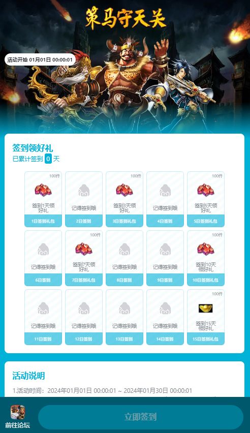 《策马守天关》元旦签到领好礼 充值消费有惊喜