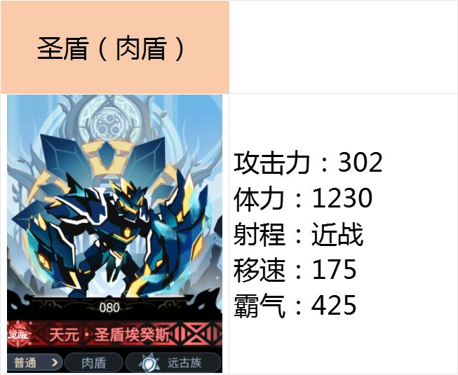 这是盾1级的基础面板,那么他在远古里的排行多少,我们来瞅瞅圣盾对比其他三近战远古的身板