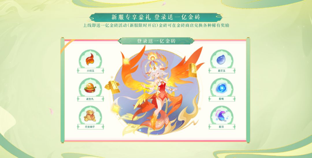 登录即送一亿金砖新服活动限时开启!金砖可兑换火纹玉、福气猪猪、星芒玉等成长道具,助您一飞冲天~