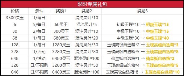 专属礼包奖励:爆竹、混沌灵叶、灵玉