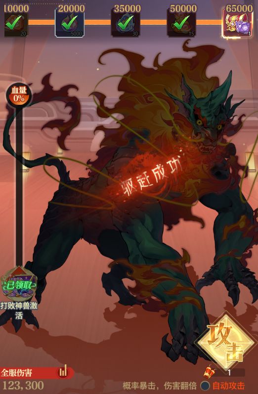 ✦使用爆竹攻击神兽,有概率造成暴击,暴击时伤害翻倍