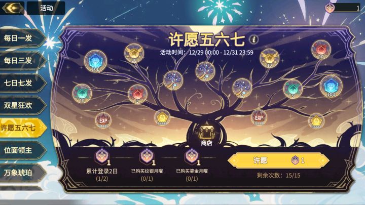 除此之外,周末专属活动「许愿五六七」、「双星狂欢」也已开启!参与「许愿五六七」有机会获得“形态末梢”在许愿商店中兑换形态喔~「双星狂欢」活动期间,每日开启两项增益,探索效率立刻拉满!