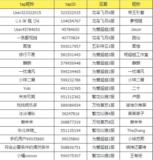 我们随机抽选了以下幸运冒险者,快来看看有没有你的名字吧!