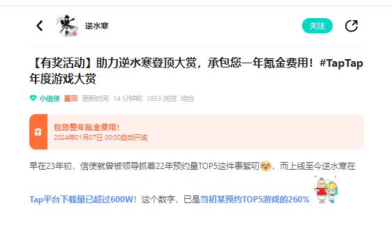 一年一度的Taptap年度游戏大赏又开始了,得知这个消息之后,我兴奋的冲进老大办公室,跟他讲了我策划一下午的拉票活动,我们老大也很兴奋,他打开手机给我看了一张隔壁逆水寒的拉票活动截图,...