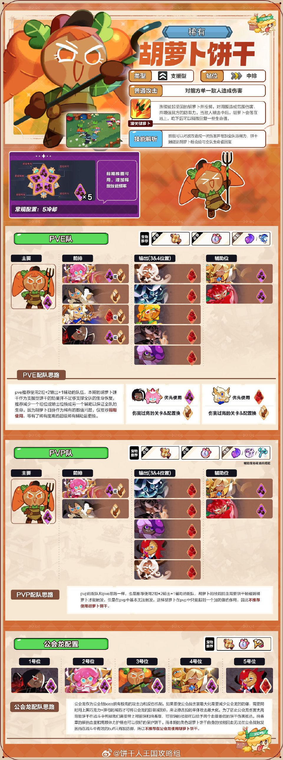 本期内容是胡萝卜饼干测评,作为稀有级别的饼干,技能不仅有伤害,有恢复,还能为队友提供防御力,如此全面的技能,实战又该如何使用呢,一起来看看胡萝卜的相关测评与配队吧!
