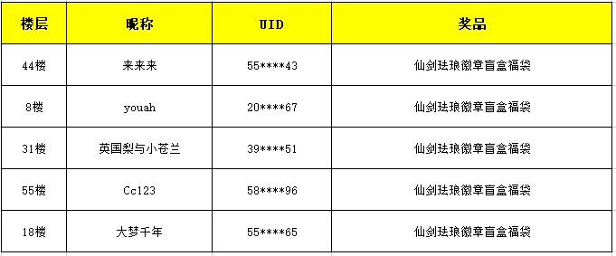 让我们一起来揭晓本次获奖的仙友名单吧,没中奖的仙友也不用灰心,攒运气等爆发,相信下一个中奖的就是你,感谢各位仙友们对《仙剑世界》的支持!![[表情_开心]](https://img-tc.tapimg.com/market/images/48516f625646b5ea2c66f0cab3c9c52a.png)