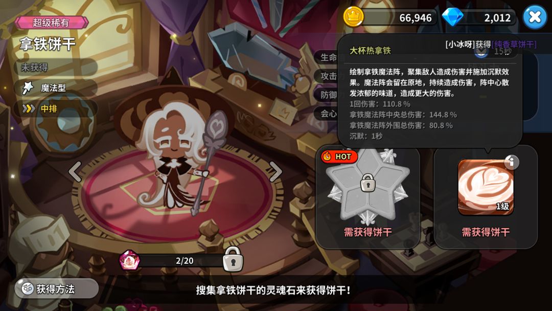 拿铁饼干可以把敌方目标聚拢到一起,然后进行持续输出,释放的魔法阵中心399%的伤害,外围也有368.8%的伤害,最为关键的是技能还附带【沉默】效果,让敌方的饼干放不出技能,它搭配任何阵容都非常好用。