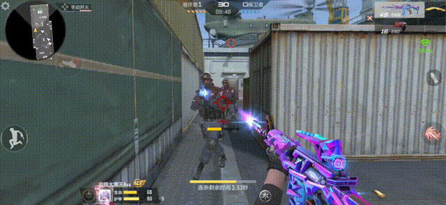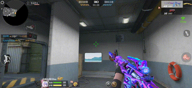 然后是高端竞技玩家必备的M4A1-竞界荣光,这款武器的外观极具赛博风,蓝紫色枪身会在不同的角度展现不同的效果。而且它的枪模较为小巧,特效也很低调,给持有者提供了更充足的视野。
