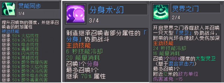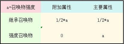 继承召唤物:主要属性享受1/2*召唤物强度加算,附加属性享受1/2*召唤物强度加算。