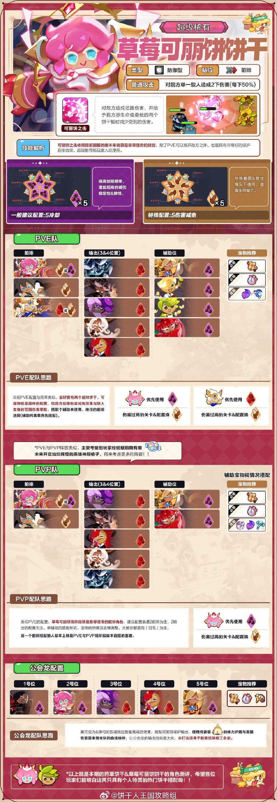 本期测评的两位角色是人气超高的草莓可丽饼&温暖饼心的药草饼干,草莓可丽饼是长期霸占队伍前排位置的饼干,而药草饼干虽然使用不多,但是技能拥有独特的解除负面效果,在某些场合也能发挥奇效。一起来看看这两位饼干的配料&阵容搭配吧!