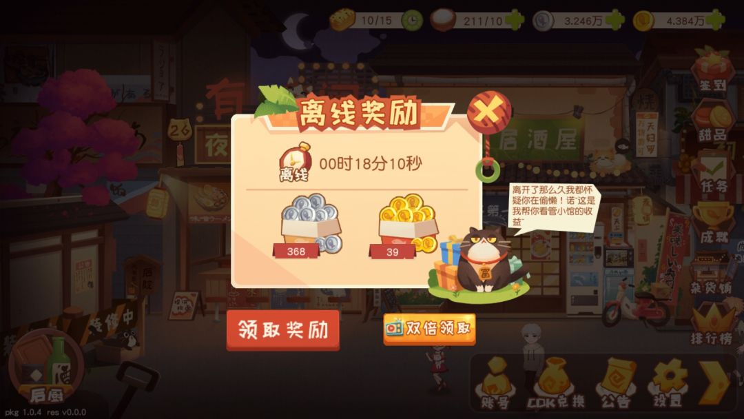 无限领取离线奖励,可以看下这两张图里的金银币差了很多。