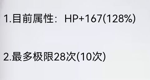 当你“武装”达到“100%”时才可以“极限”。极限次数最多28次,上限为128%,也就是你必须使用28个以内的花/果将你的属性提高到128%。