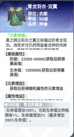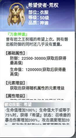这件衣服也是纯加生命值的,配合上面的武器,一件武器加一件衣服的话,加了600%的生命值,这个是非常夸张的。龙妈加了600%的生命值,首先是它的宠物输出会提升很多,另外的话,判官这个宠物的话,它的被动会直接拉满200%。人体的输出会上很高的一个台阶,所以如果玩龙妈的话,武器和衣服都可以选。