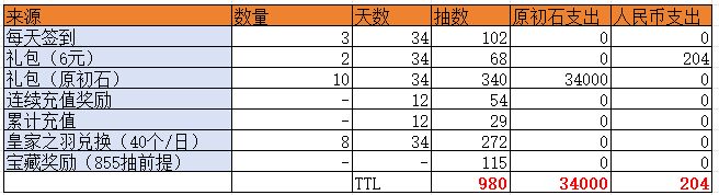 如果运气好,在皇家之羽兑换里面能出现平均九个的话,那么也可以将抽数达到1000抽。或者在最后两天补两个30礼包。性价比还是比较高的,因为买一秋以后还会额外奖励70抽。那么也就是说我们利用6元连续充值的话,最高可以达到1070抽。不能说100%能抽到我们想要的珍稀大奖。至少确保了四个保底装备到手。好的话,五个到六个应该问题不大的。我也是选择了这样的一个方案,目前在充值中。是这里要说一点,皇家之鱼如果每天要达到40个以上,那你最起码每天四次不能中断,那么对大家的休息也有一定影响,所以是不是要开着闹钟自己设定啊?这个还是自己考虑吧。