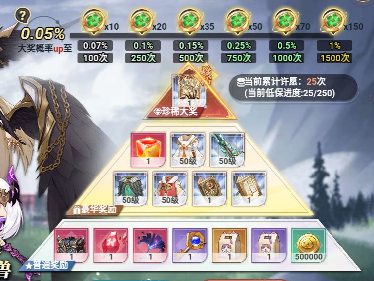 这一次的宝藏里面最大的变化点就是保底的话从500变成了250,这一点的话非常好。但是有一点比较坑的是这个珍稀大奖。虽然随着你抽的次数越多,他大奖的概率会提升。从0.05%提升到最大1%。但是和官方客服确认以后,他并没有设定1%就是100抽必出。也就是说这一次的珍惜大奖和以往的活动来比的话,他没有大保底。以往的话,两千抽必出大奖。但是这一次没有,也就是说如果说你抽满1500次以后,每一次都抽不出也是有可能的。哪怕你抽了3000次或者4000次也有可能抽不出,因为它的出现几率是1%并没有保底。这一点其实有点坑。希望有的朋友如果比较黑的话啊,可能风险就比较大。那么作为最性价比高的话,我看了一下,目前有两个礼包,一个是30块的,一个是六块的,这两个礼包的返还率是400%,性价比非常高。当然氪佬的前提请无视。我就根据这两个情况给大家推荐一下。我个人也是选了第二个。个人感觉性价比还是比较高的。