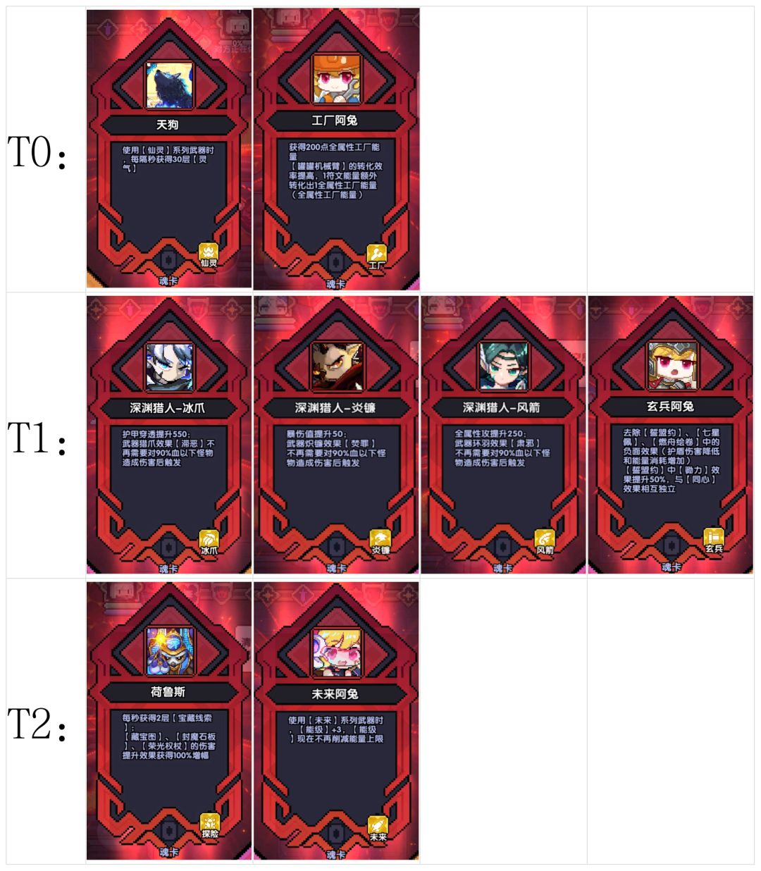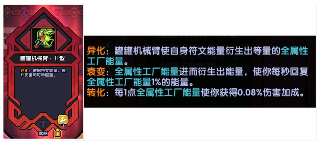 分析:上限最高,但较为依赖红色工厂卡。能与“魂卡-符文大师”、“魂卡-工厂阿兔”联动,但与“天赋-符文觉醒”没有联动效果。满配置(机械臂+1590能量+红色符文大师+红色工厂阿兔)能提供328%全伤,加成极其恐怖