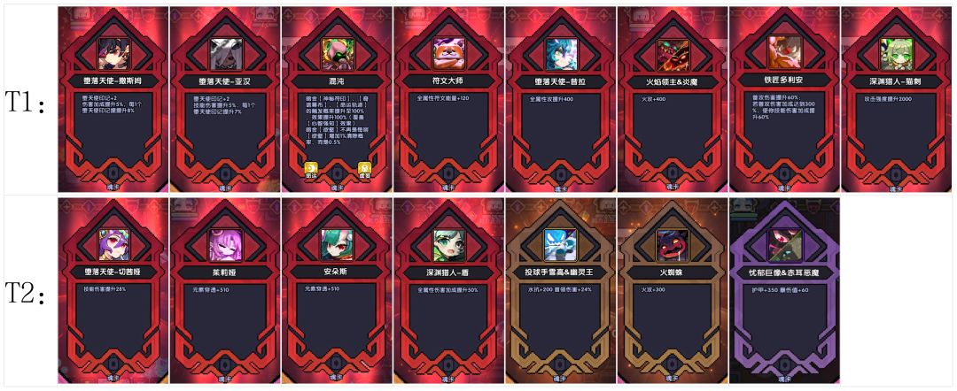 ①混沌(红色):主要是为了叠赌狗戒指,叠个20+层赌狗轻轻松松。其次就是“暗金-神秘符印”和“暗金-奇诡幕布”在此魂卡加加成挺不错。