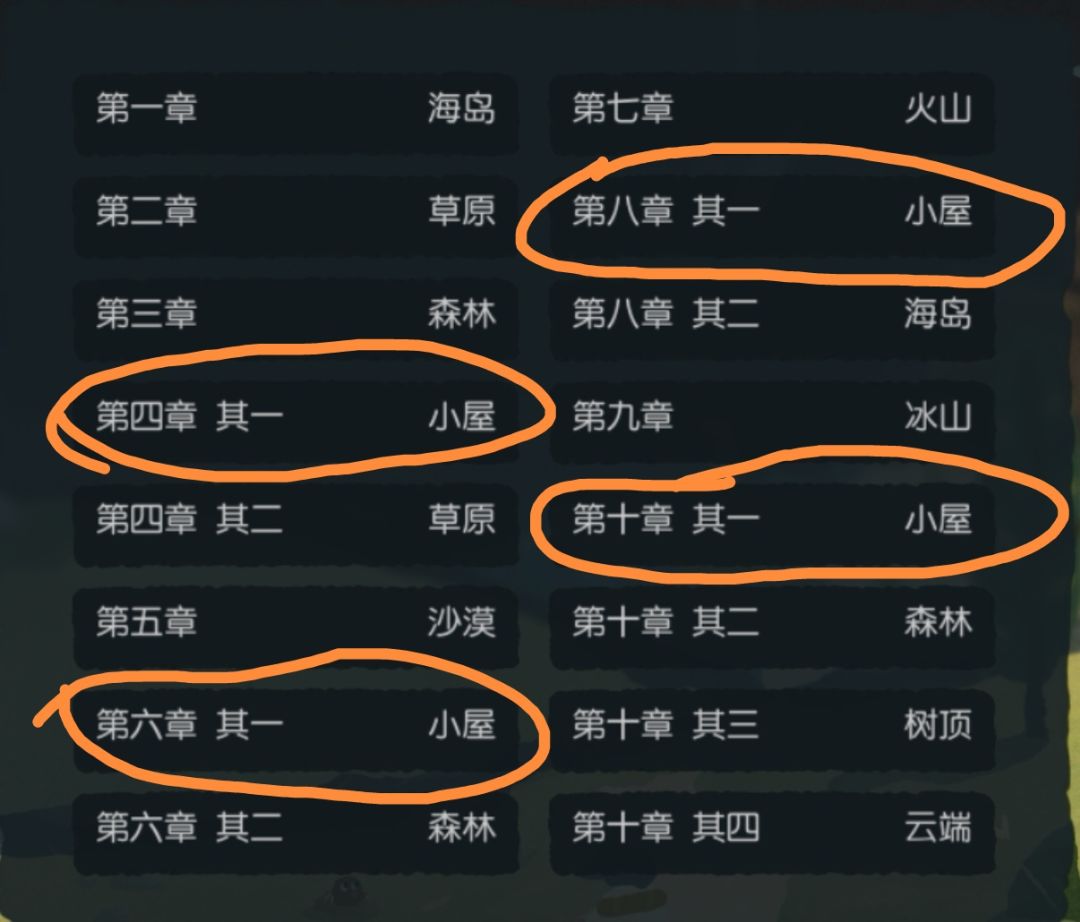1.已经通关的不用担心,再次进入游戏时选择一个空白存档,点击【选择章节】,即可看到游戏的所有章节(未通关的没有这个选项,建议先把能读的书读了,通关后回头来补前面的)我们要做的就是查漏补缺,所有标记了【小屋】的章节全部去一遍