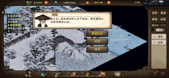 )然后回去黑水沟找玄慈方丈,突破瓶颈并解锁内劲、罡气和随从突破。