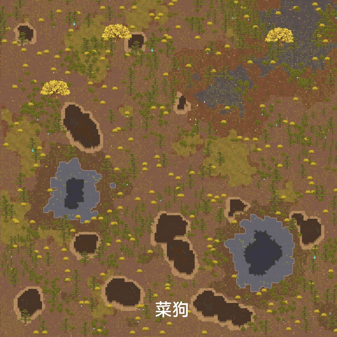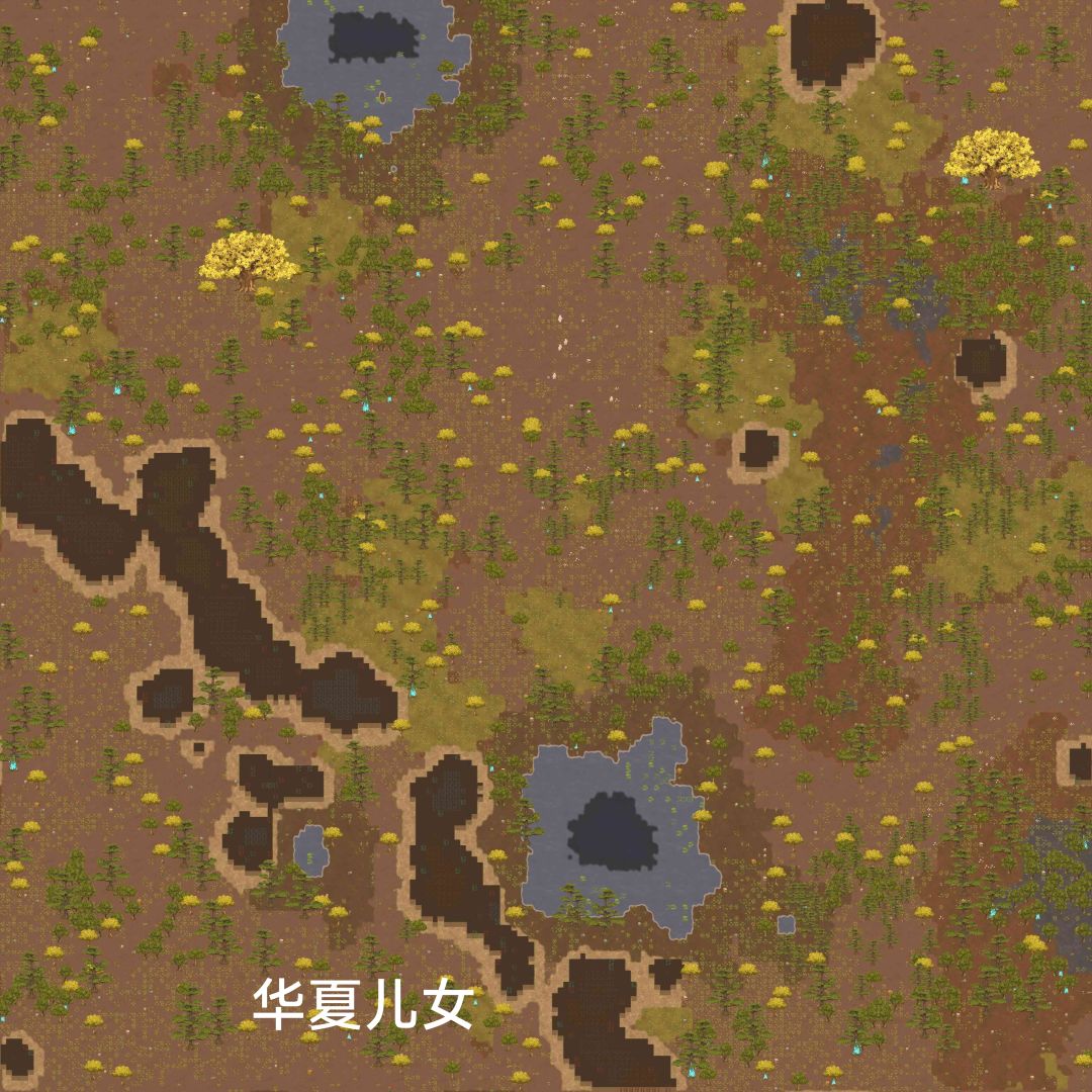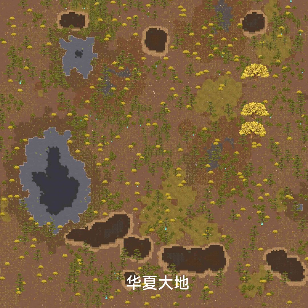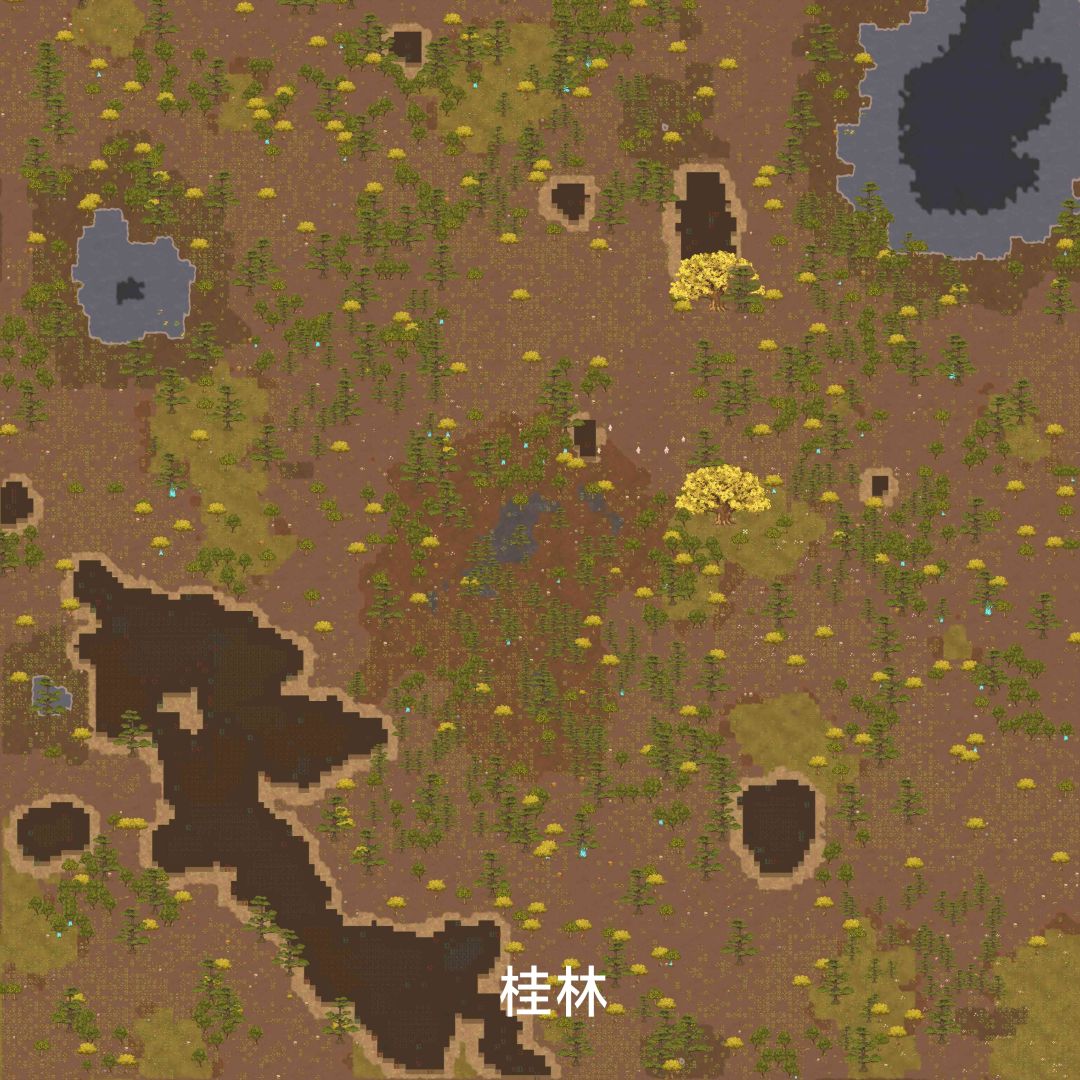 这图还是比较好的,灵土和沃土都比较多,矿物资源也齐,而且有巨银杏树,欢迎试毒。
