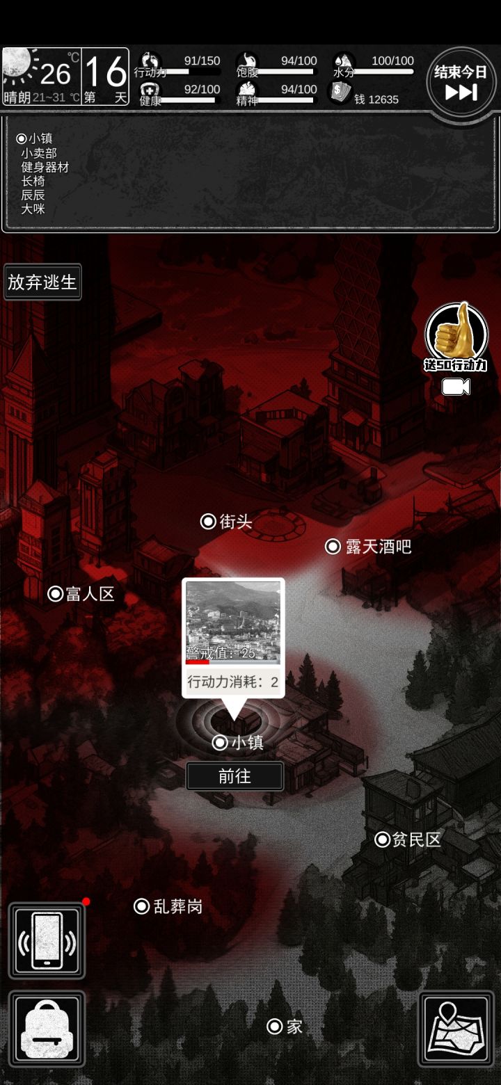 思路:花体力去小镇坐长椅 血赚 小卖部东西药每种各备一个 食物可以在没会员全买 加速会员获取 直到有会员后看着买 有会员后的自行车必买 加体力饮料必买 马杀机花钱买体力稳赚不亏 妙拉高好感一次二百(一直选请喝奶茶 工作选第一个)酒巴慕沙50体左右可毛一千(第一次选是和劝阻得250 高好感叫你过去得250 离开给500 离开后就不要去了浪费体力)有钱后基本全红 可以囤点食物等通关 地方警戒高于六十就不要去了 第29天可以去垃圾站卖所有东西