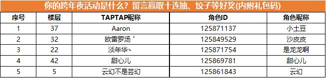 1、本帖回复:角色ID+角色昵称+跨年夜活动,即视为参与成功哦!