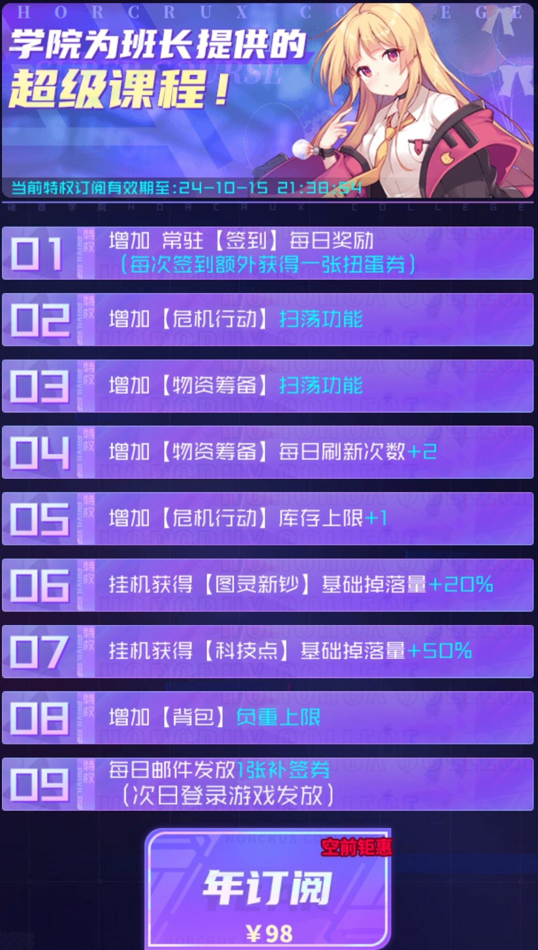 特权订阅目前已经降价为98,每天送一抽以及如图其他特权,是常玩玩家最值的氪金项目。