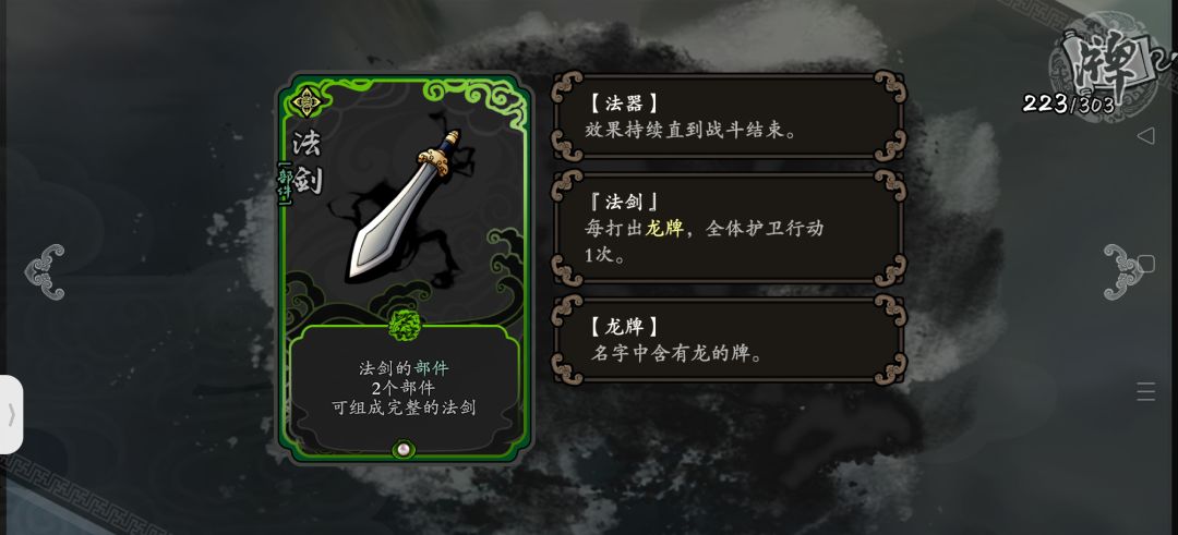 重点卡牌:法剑 虎头钩(也有一些武器牌如玉革,非衣也不错啦)增援 龙牌(但不凑睚眦) 牢不可破 固若金汤
