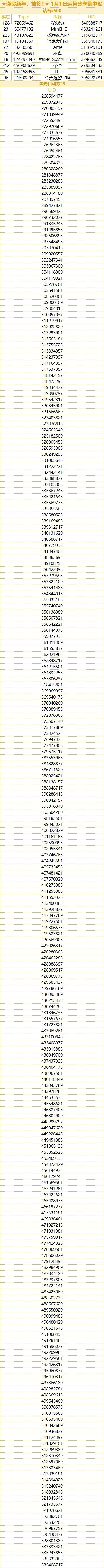 助理君将会从每个运势分享集中贴中,各抽取10位幸运制作人送上钻石x500作为新年贺礼;